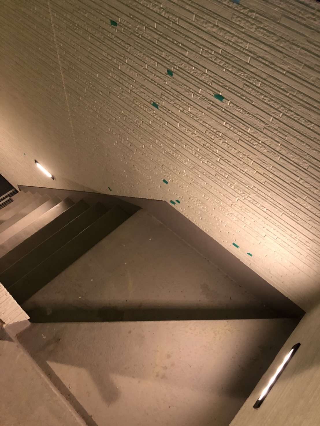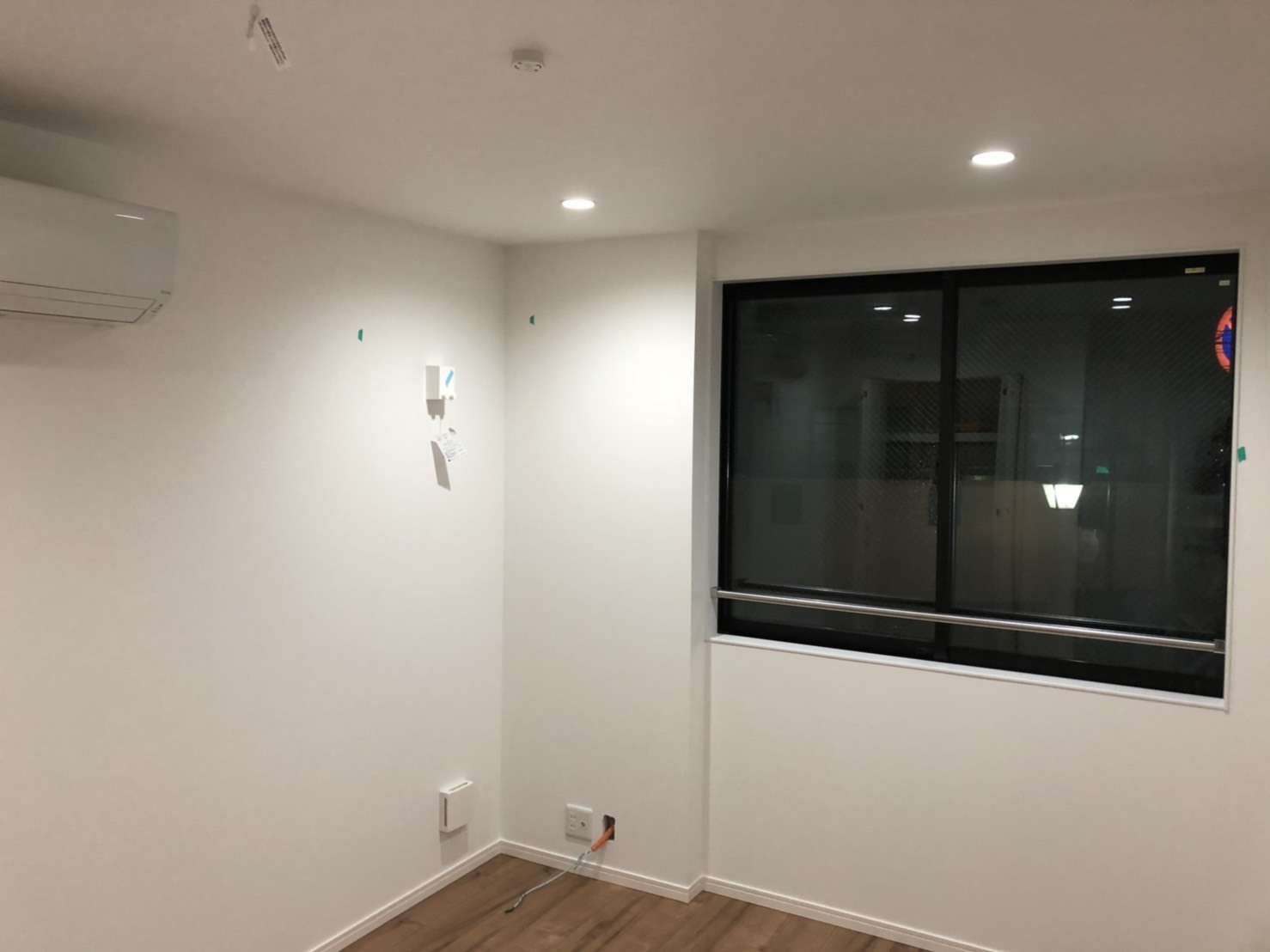 (ぽつぽつとある緑のシールは、施工中に着いた傷や汚れの印なので、このテープを目印に補修屋さんや各担当業者さんが直してくれるのです。)
